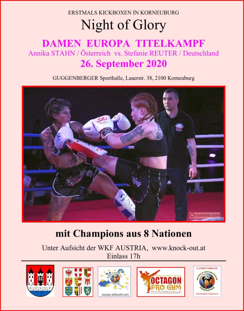 Unsere Alexandra bekommt nun am 17. Oktober ihren PRO-AM Europa Titelkampf gegen die die WTKA Weltmeisterin Alisa BAZHUKOVA aus der Ukraine.